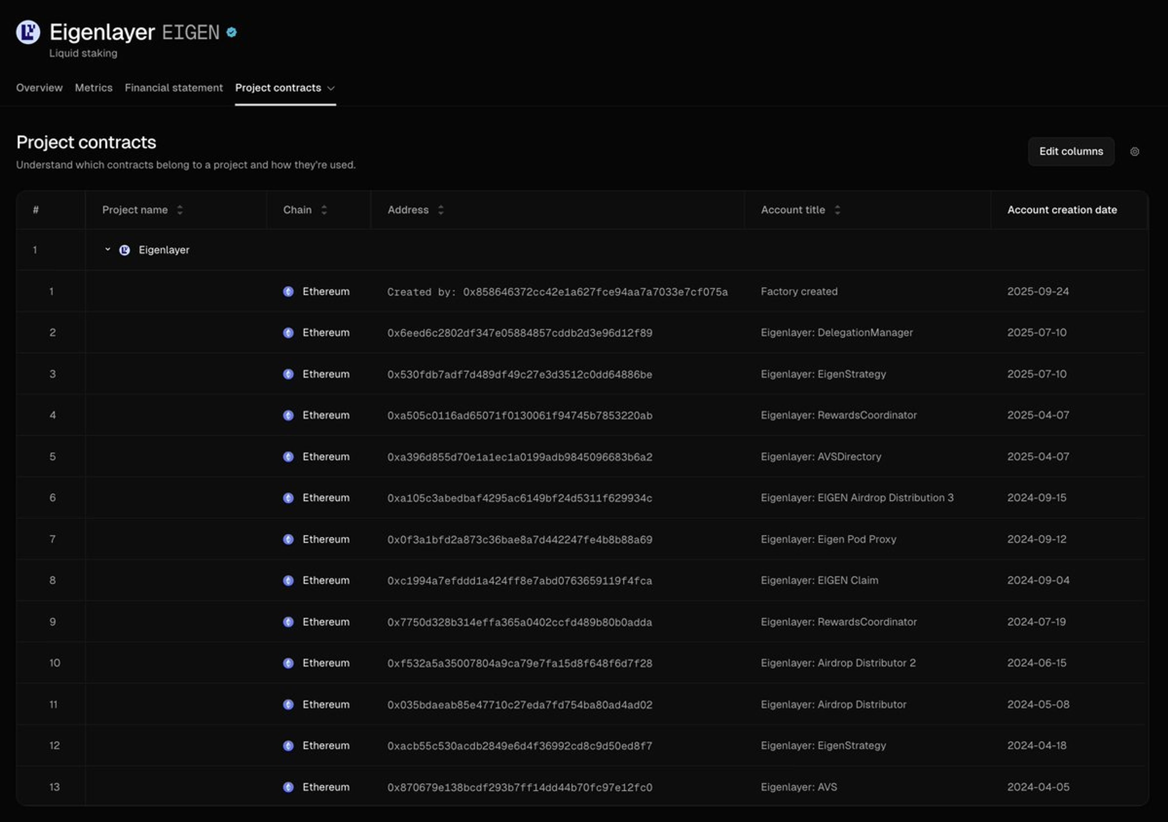 Token Terminal works with EigenCloud to maintain a labeled registry of the project's smart contracts across chains.